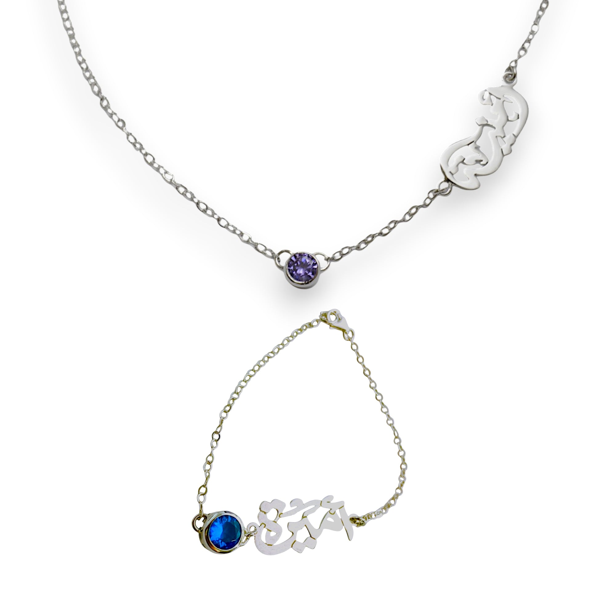 Bundle Calligraphy Birthstone Name Necklace & Bracelet