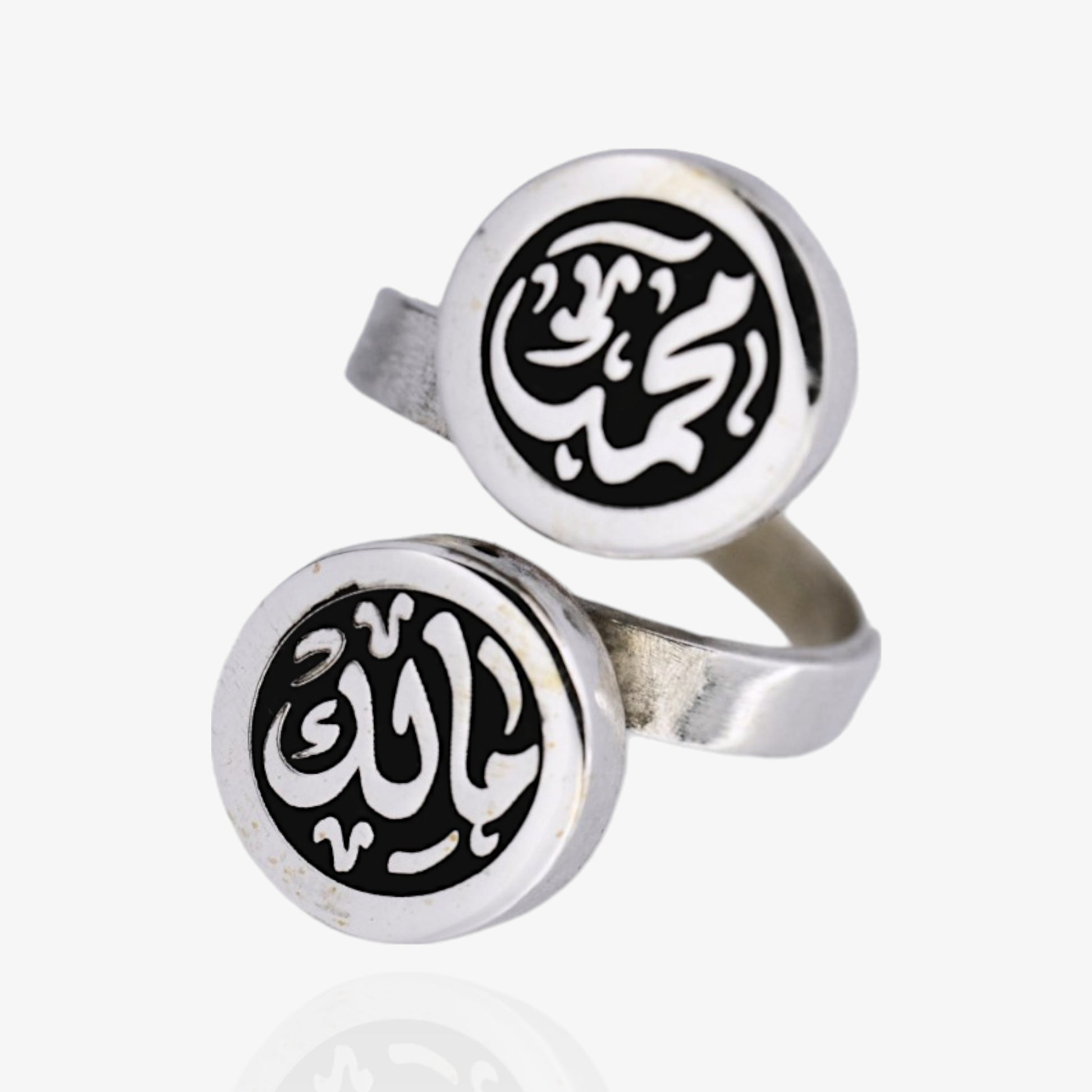Handcrafted with High-Quality Pure Silver, each ring is custom-made with two names beautifully engraved in Arabic Diwani calligraphy.